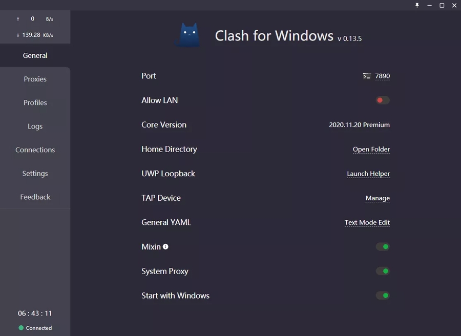 否则,电脑会在开机后一直连接着关机前的系统代理,而 Clash 却没有启动,自然就会发生连接不上,没有网络的错误。